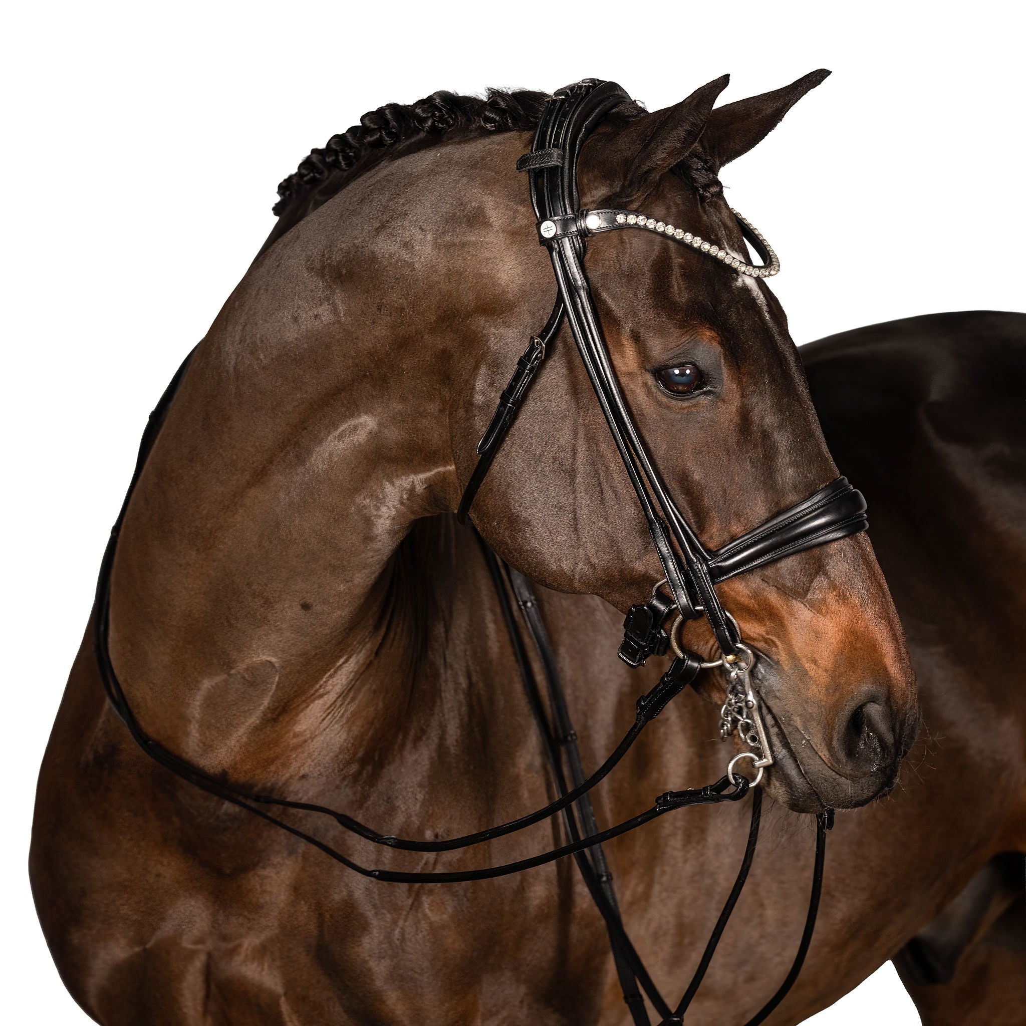 All of our horses go in Lara Tweedie bridles. The bridles are fantastic and beautiful and we don't go anywhere without them.