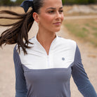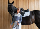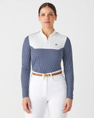 Crafted from feather-light, non-cling fabric, our new White Mini Check competition top blends refined style with peak performance. Cut to a flattering hip-grazing length, it’s designed to be worn tucked in or loose—effortlessly polished either way.