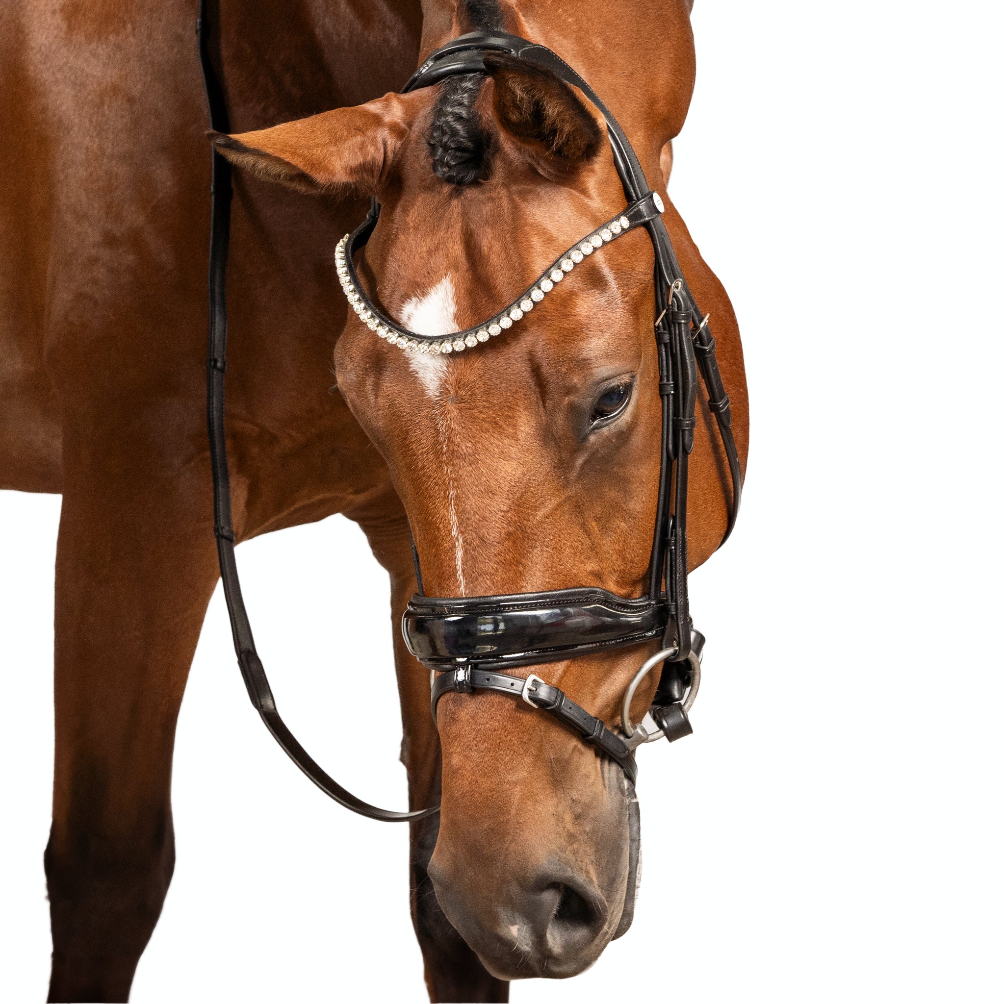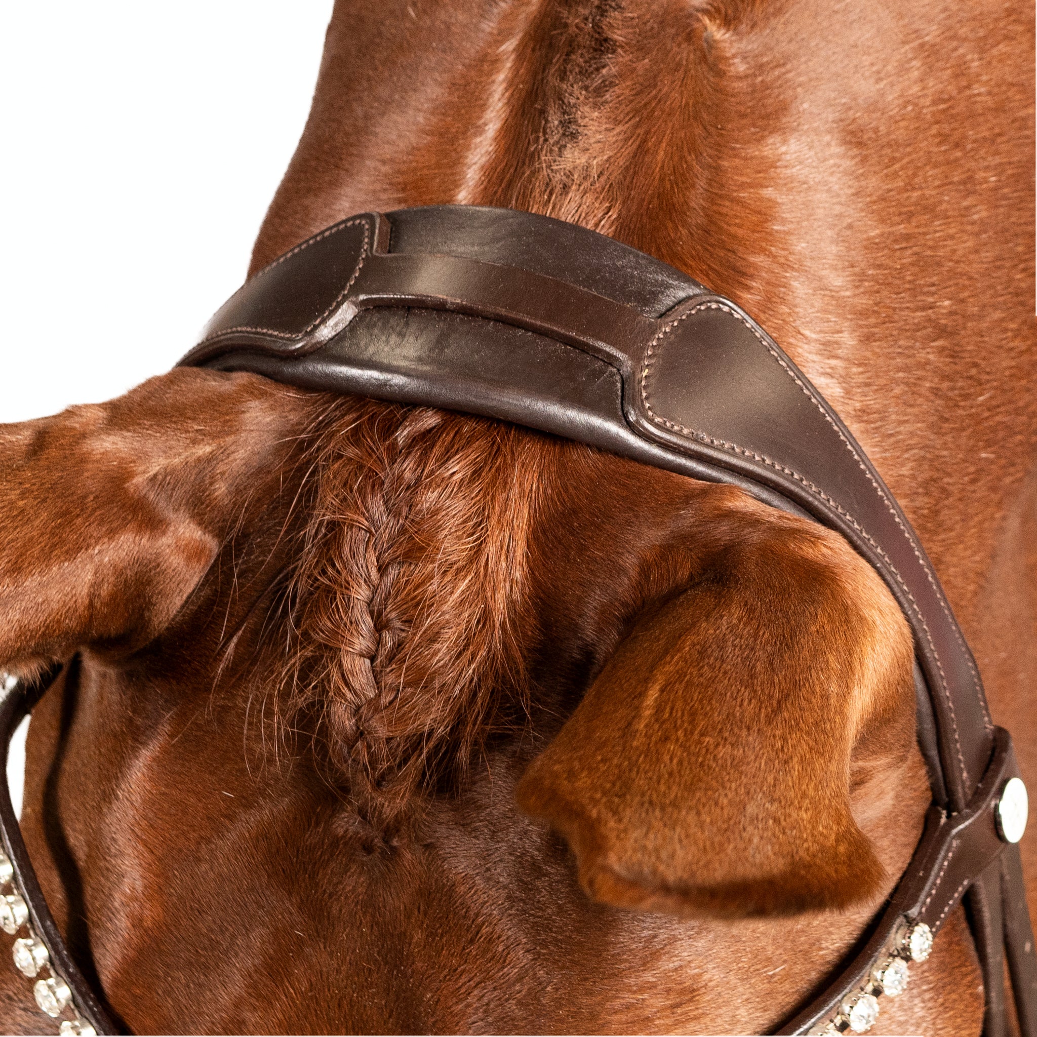 This ensures that your fully customised bridle — crown piece, brow band, cheek pieces, noseband, and reins — totals the same price as one of our off-the-shelf LT bridles.