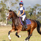 The Disney’s Mickey Mouse & Lara Tweedie Jump Saddle Pad features a rich navy satin finish with an all-over Mickey polo print — a tribute to classic equestrian style with a fun, adventurous twist. Whether you’re schooling at home or competing under lights, it’s designed to stand out.