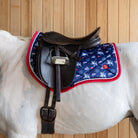 The Disney’s Mickey Mouse & Lara Tweedie Pony All Purpose Saddle Pad features a rich navy satin finish with an all-over Mickey polo print — a tribute to classic equestrian style with a fun, adventurous twist. Whether you’re schooling at home or competing under lights, it’s designed to stand out.