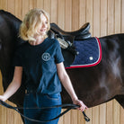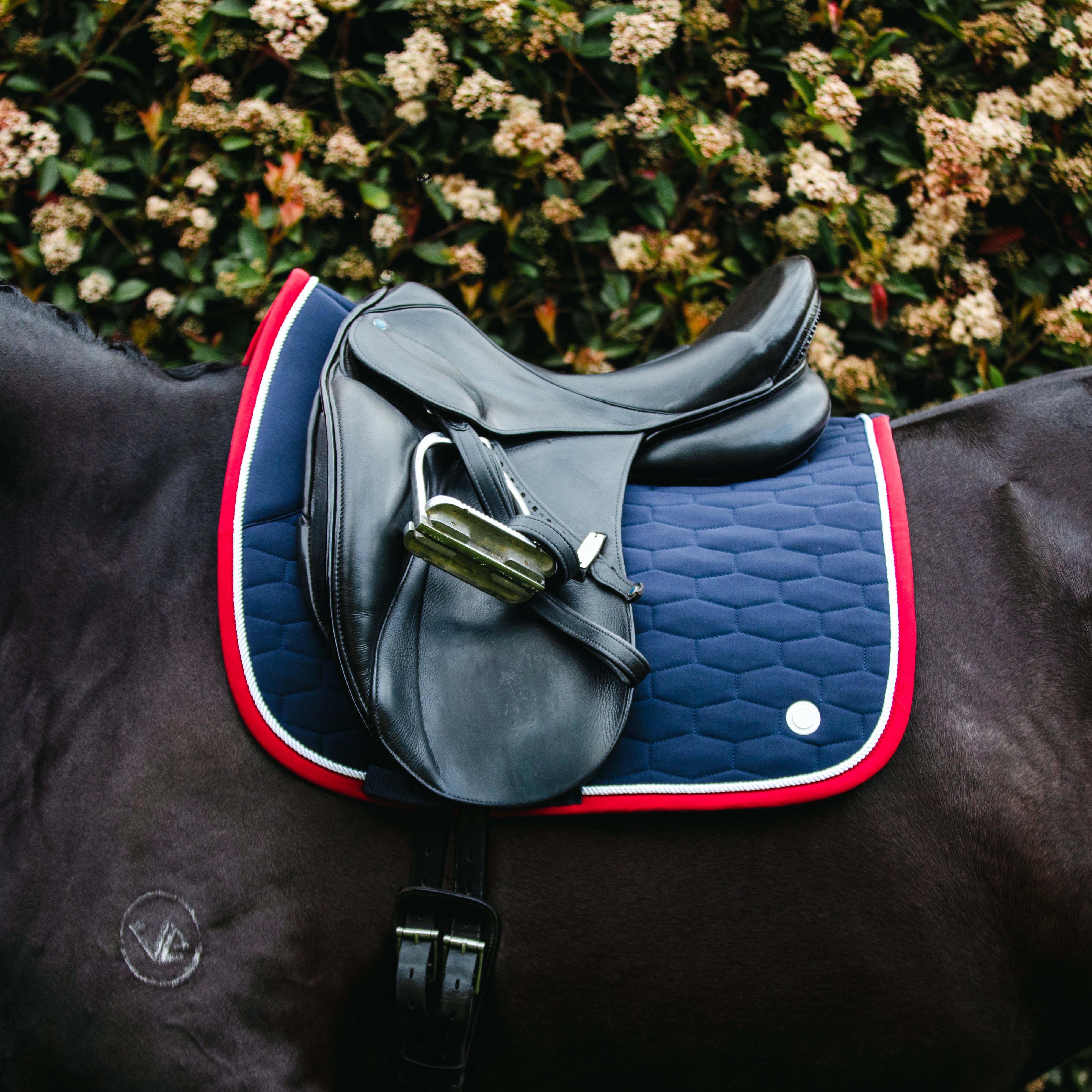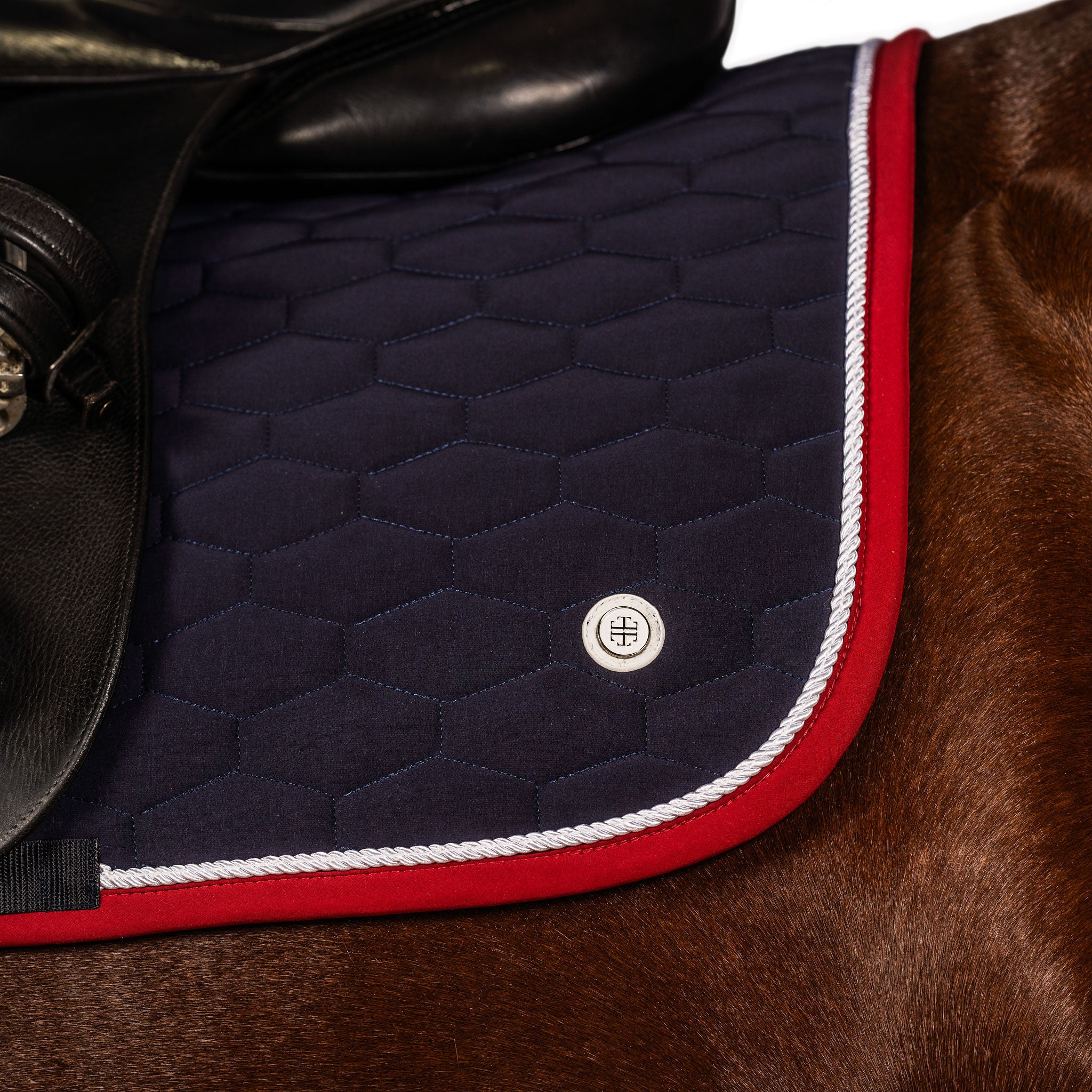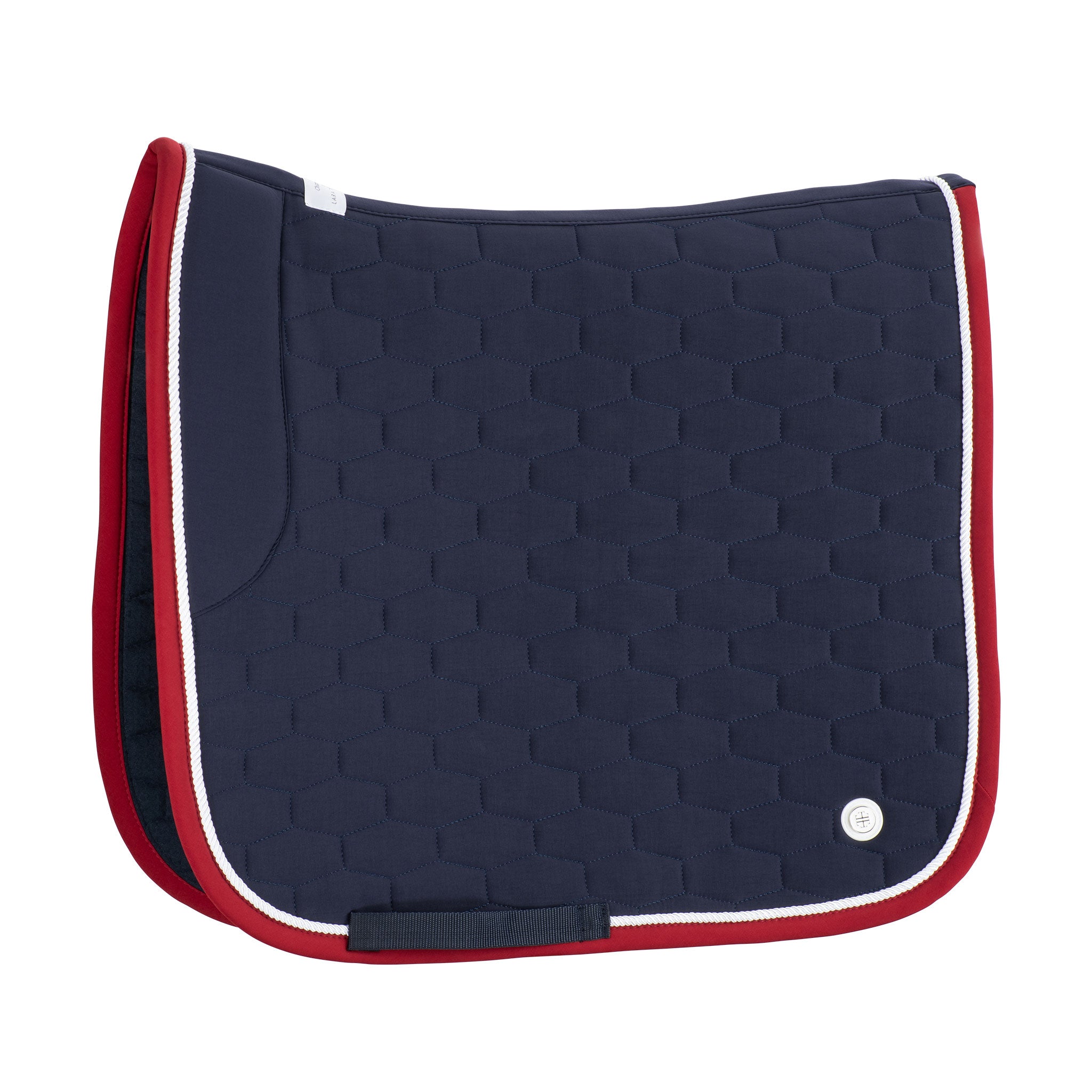 This ultra soft dressage saddle pad is the ultimate in comfort for your horse. Waffle weave cotton lining and eco fill offer natural breathability.