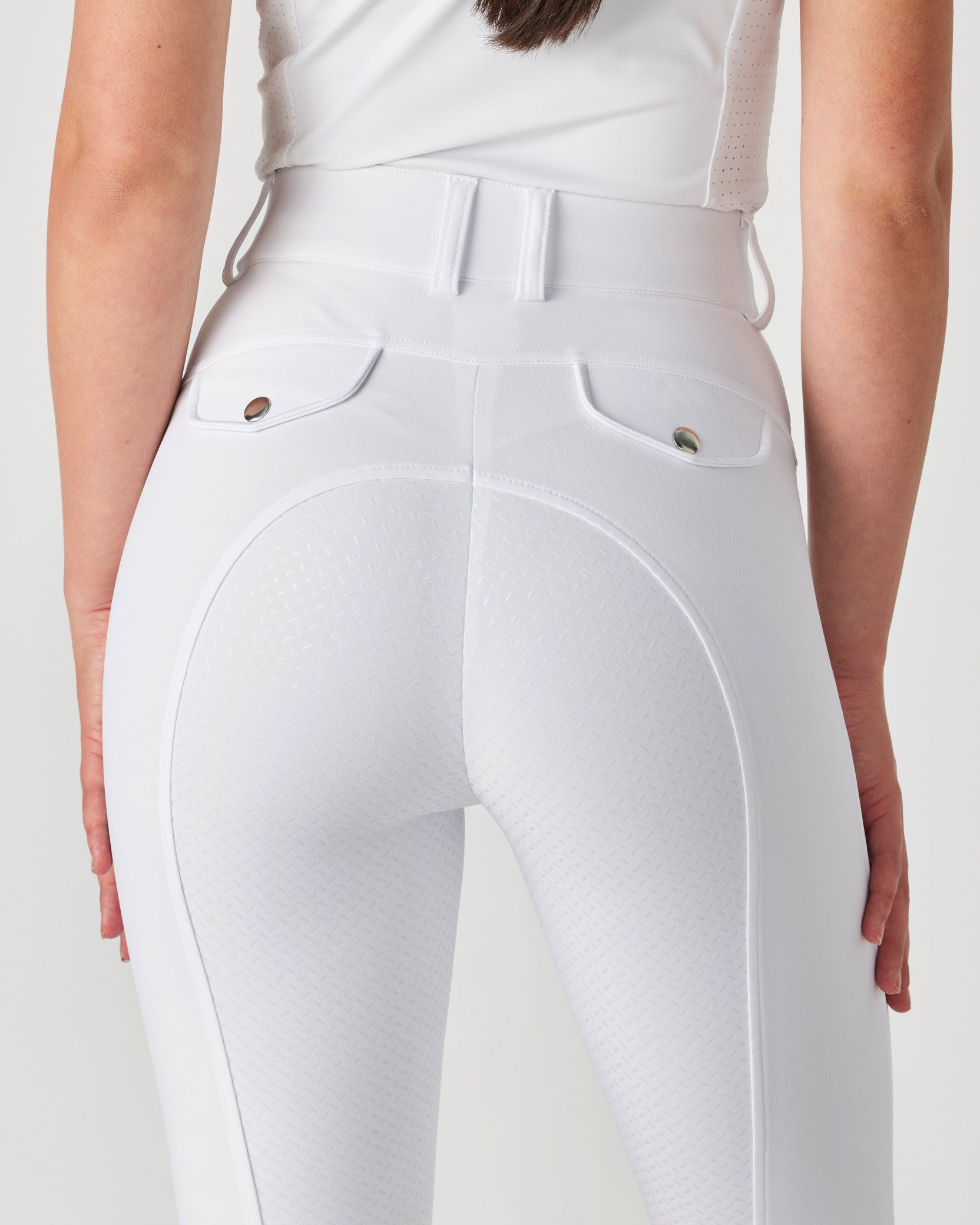 Our In Motion Breeches are crafted for uncompromised performance with a focus on a fit that flatters. Designed with a high waist and sculpting seams, they contour your body for a sleek silhouette while giving you the freedom to move with ease. Unlike many other styles of breeches, the In Motion waistband will not gape when you are sitting on your horse.