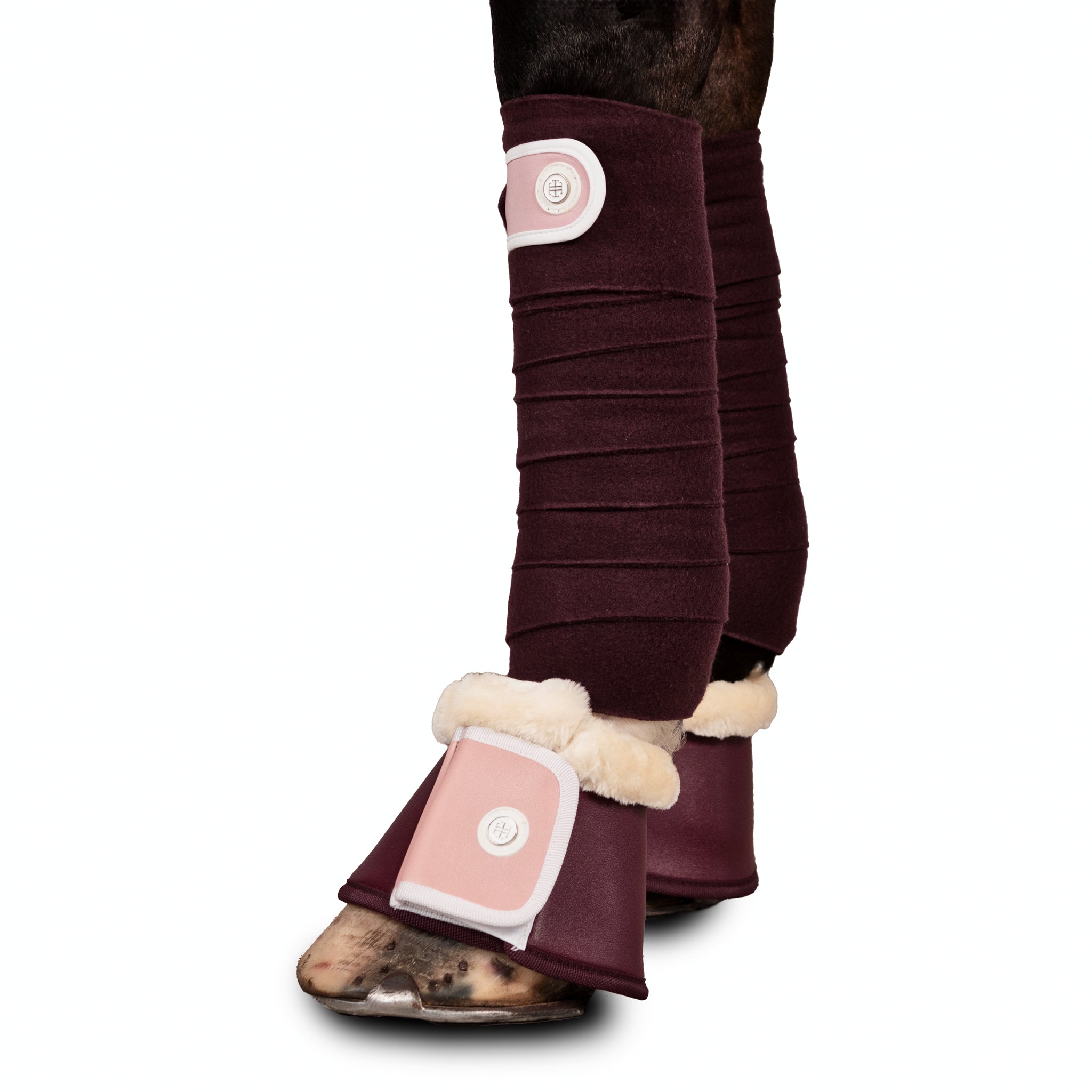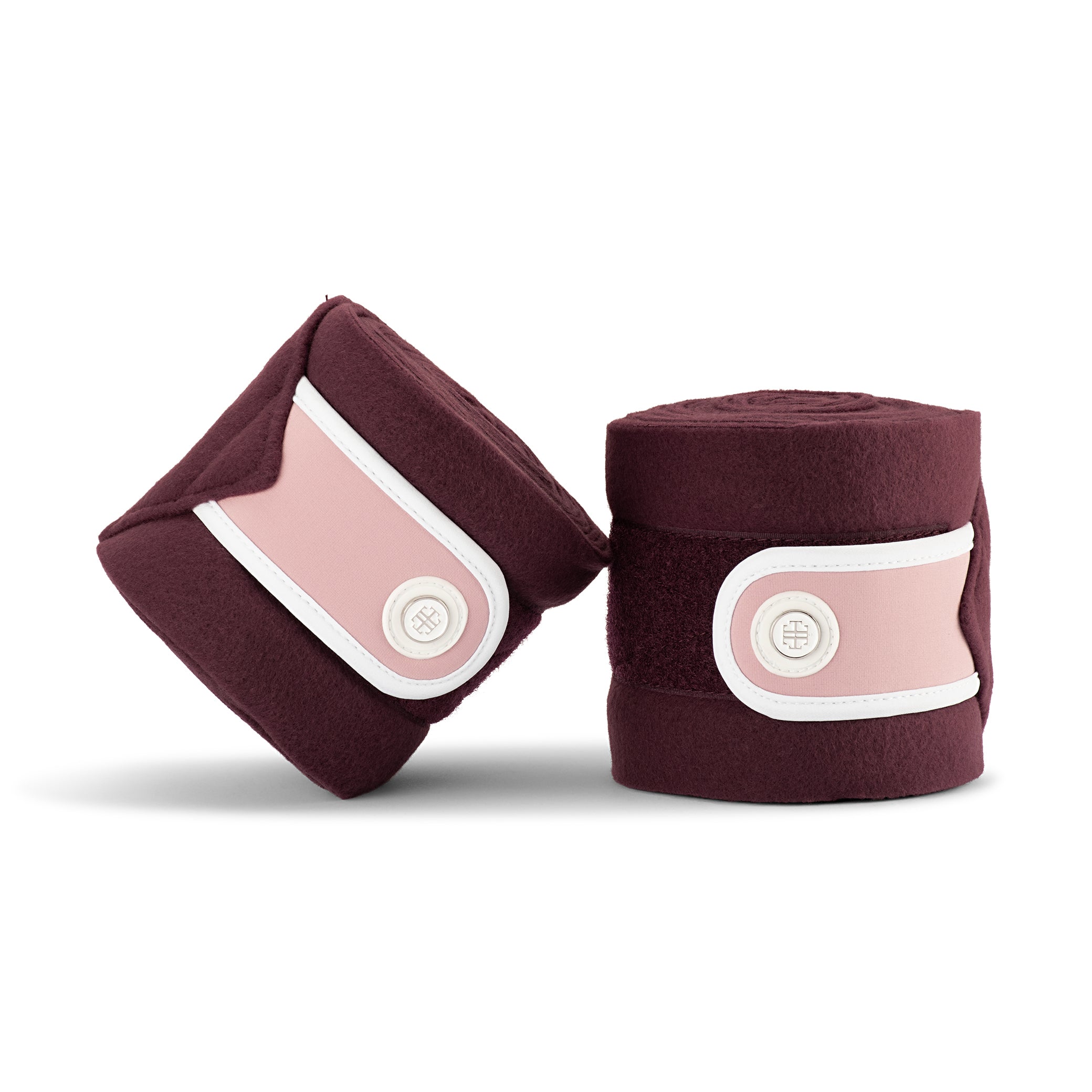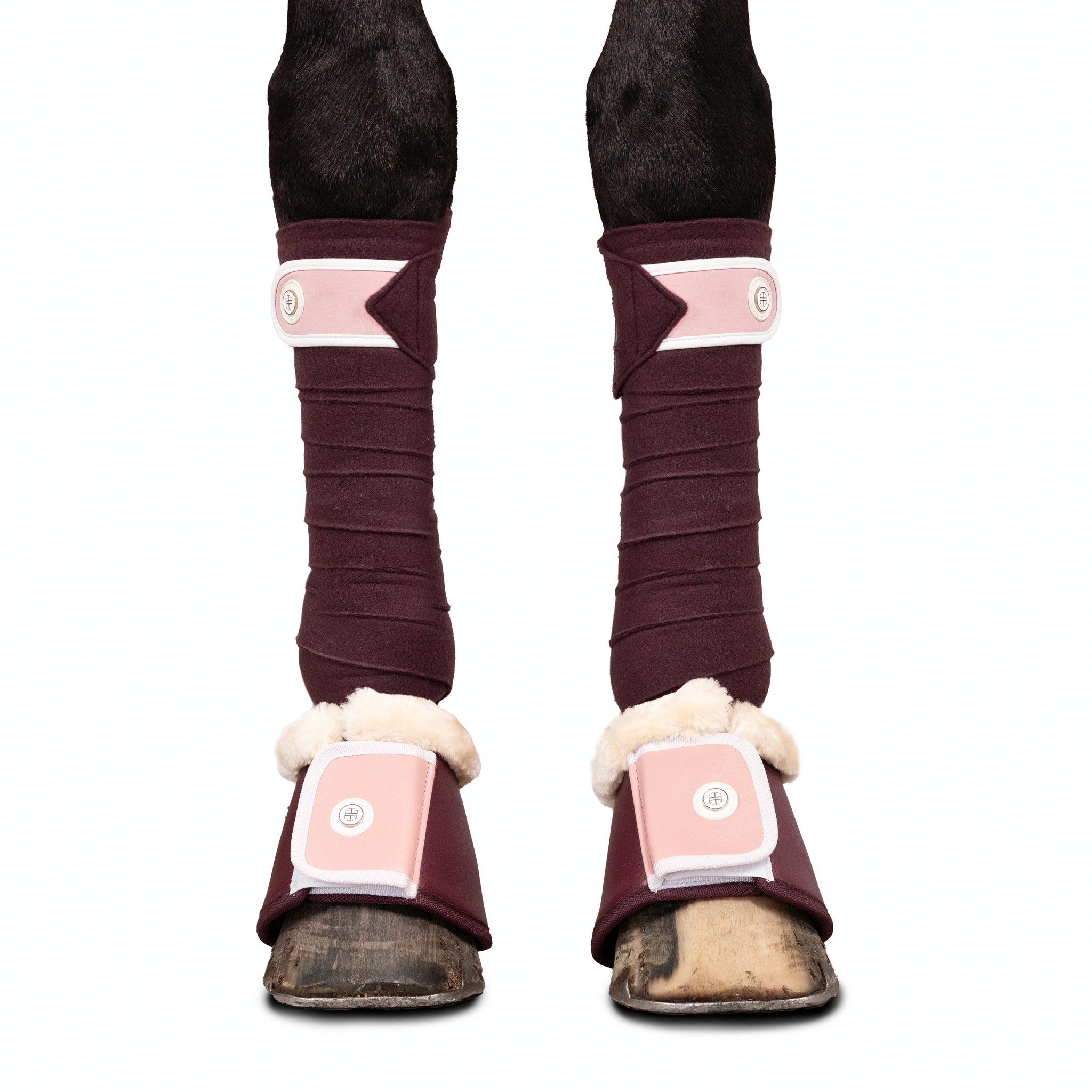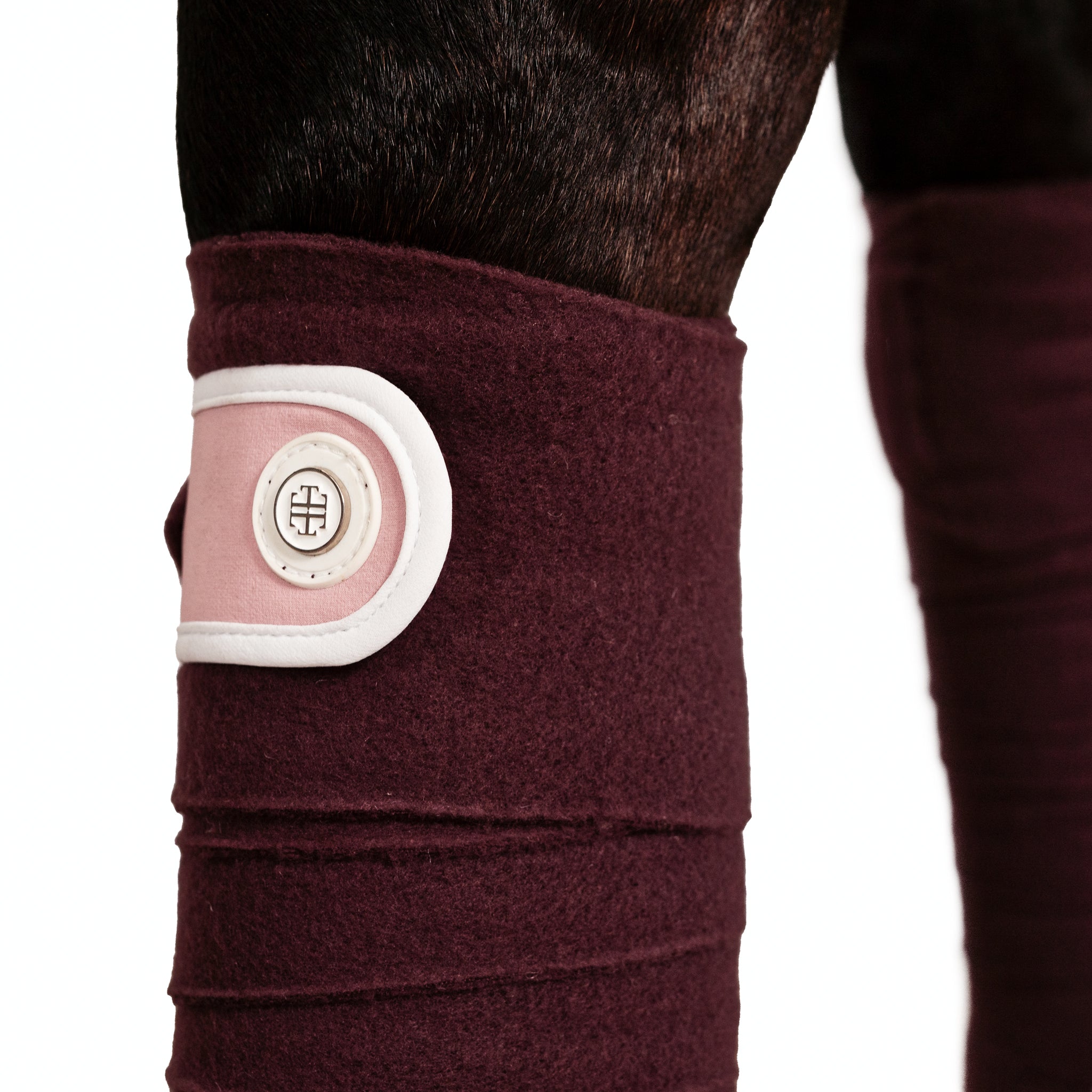 The Winter Pink LT bandages feature a velcro tab closure featuring pink 300 gsm jersey to match the Winter Pink saddle pad. The velcro tab closure features a solid colour white edge in 300 gsm jersey. These bandages go perfectly with our matching Winter pink bell boots.