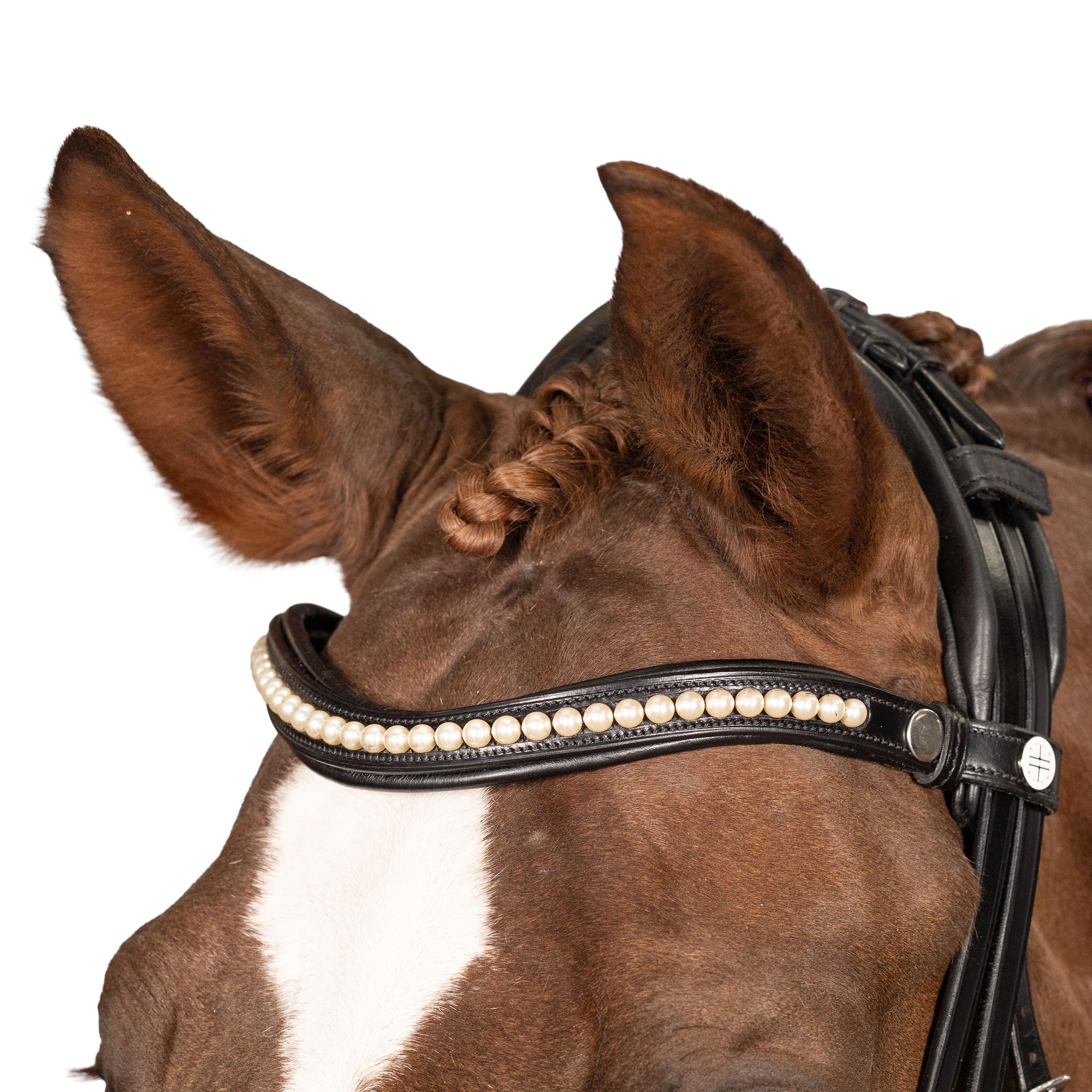 Give your AntiGravity bridle a luxe upgrade with our new Pearl brow band. This brow band is constructed from ultra soft padded leather and set with cream pearls. Available in cob, full and x-full sizes.
