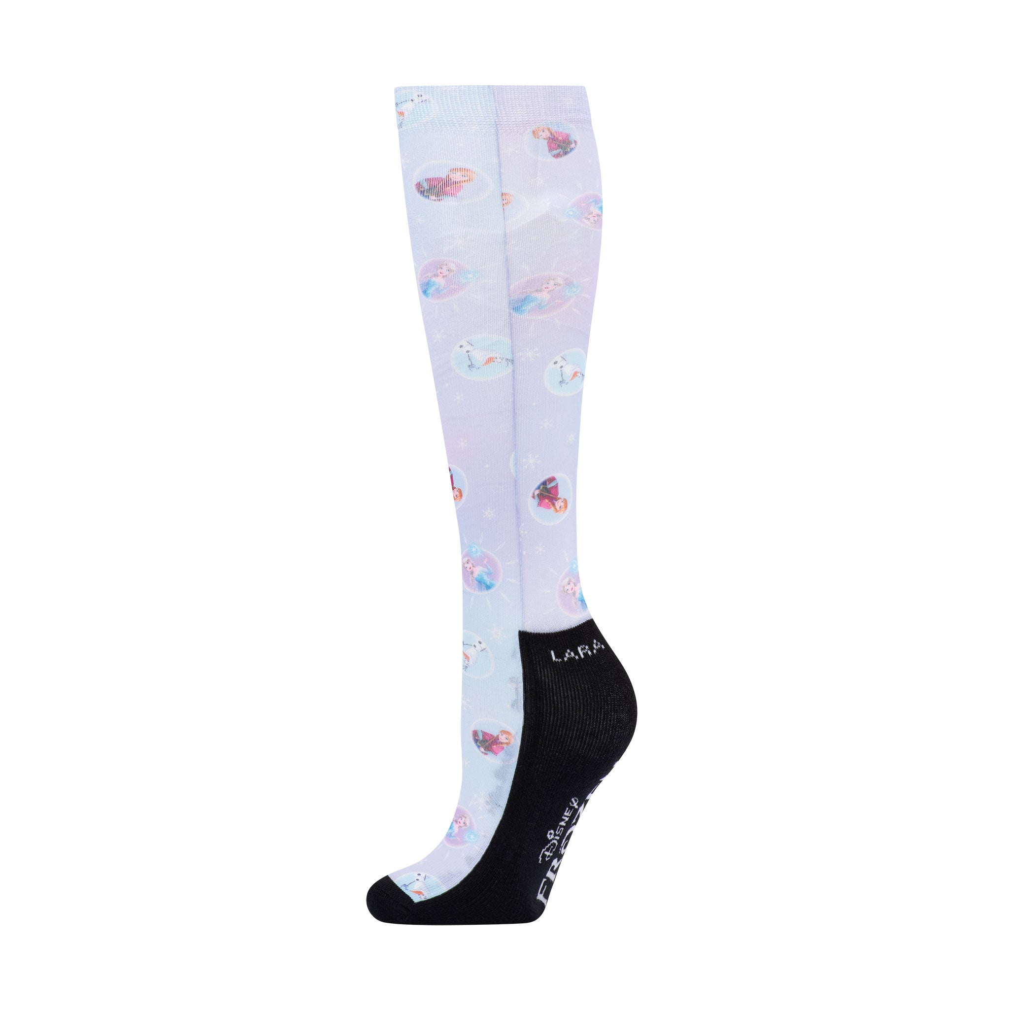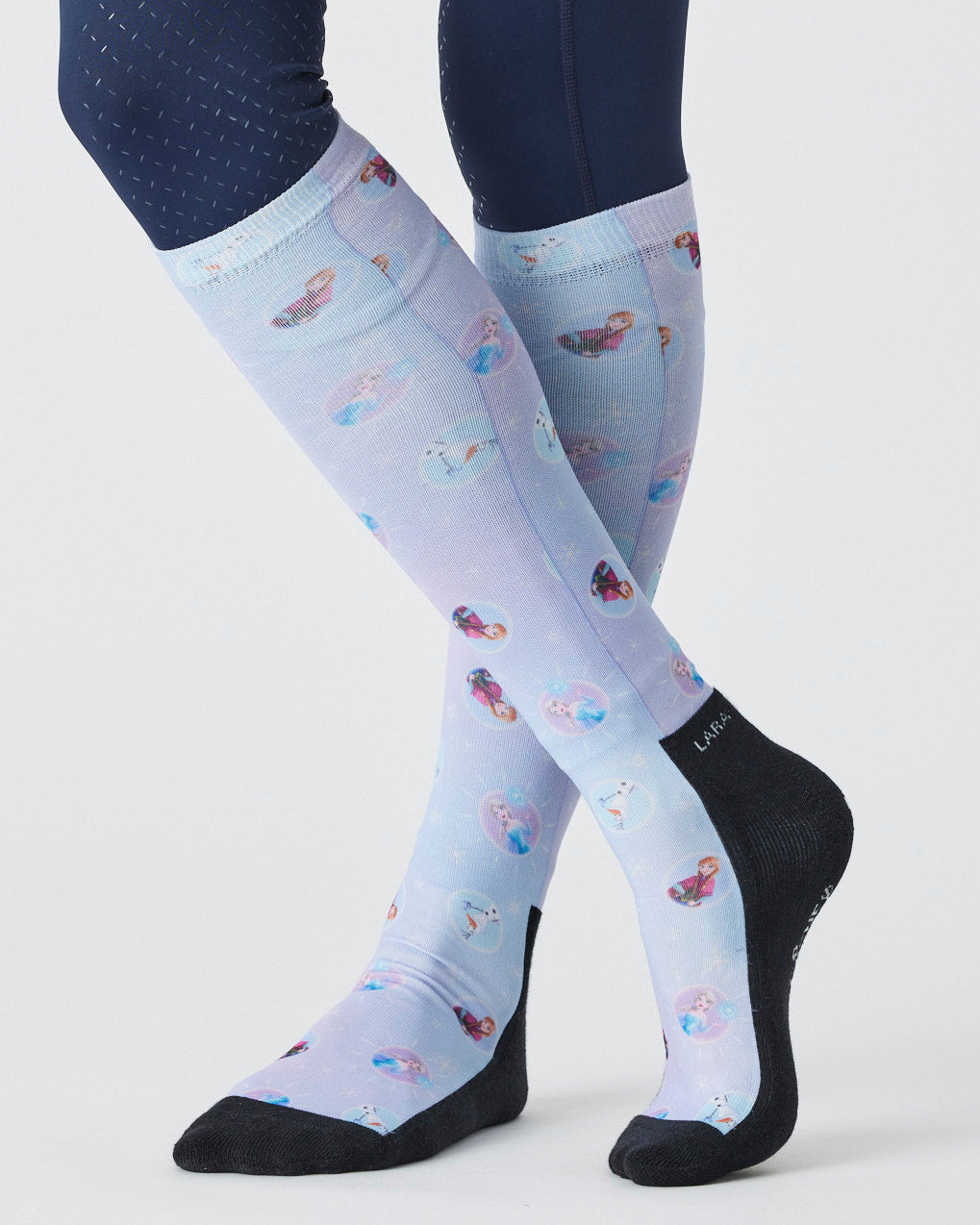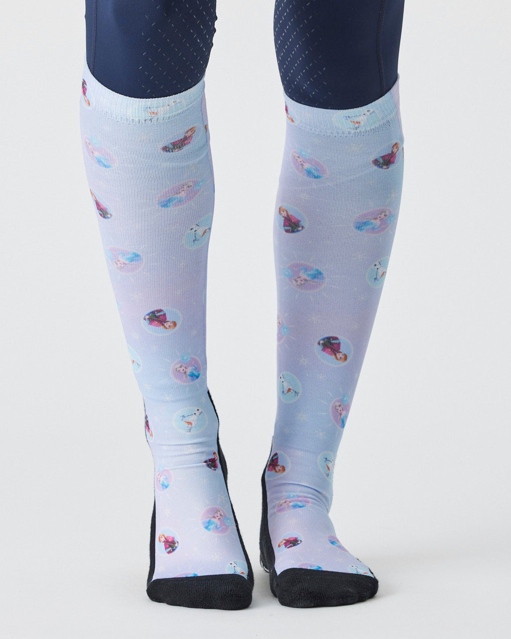 The Disney’s Frozen & Lara Tweedie Riding Socks feature a dreamy, ombre orb print that includes the main characters of Elsa, Anna and Olaf.