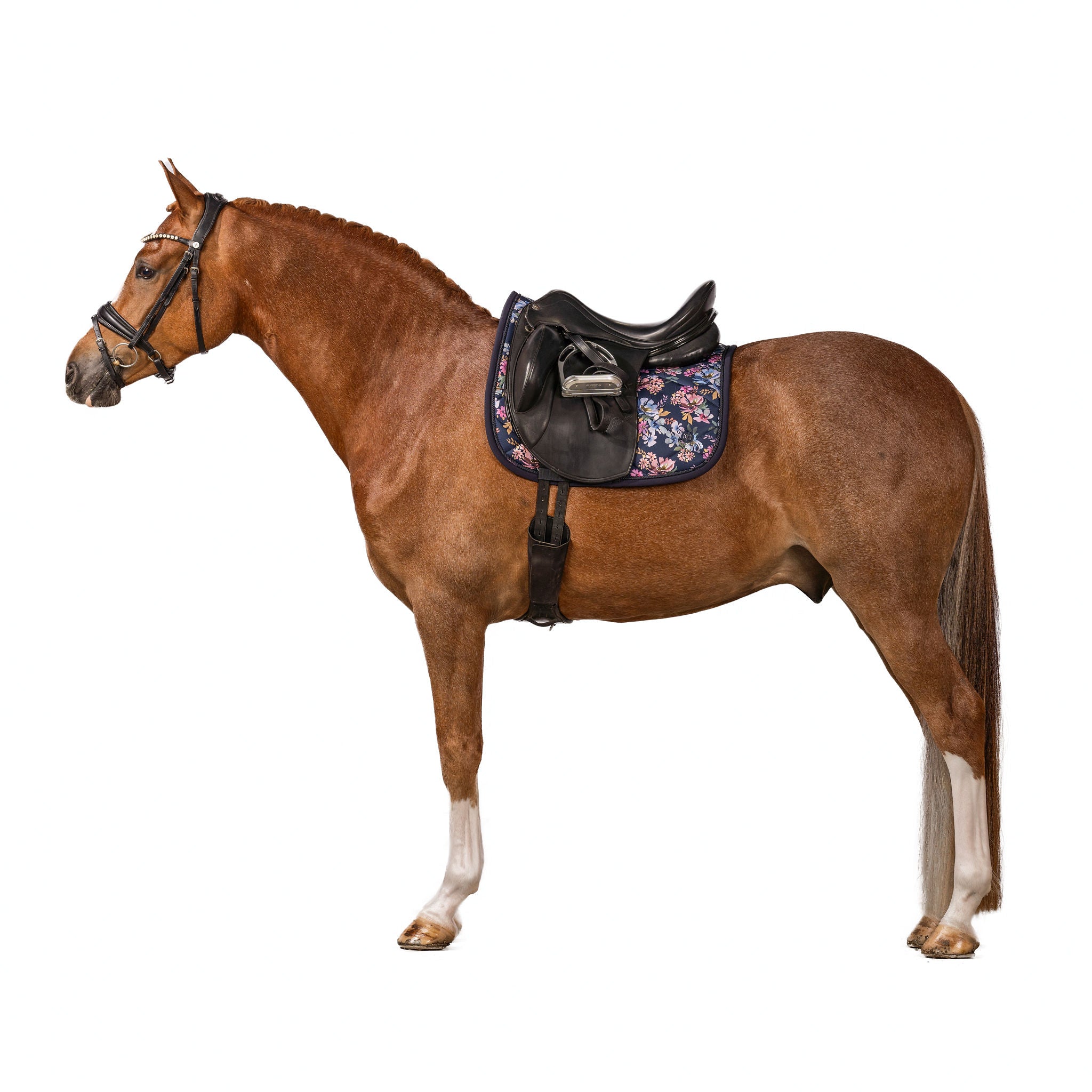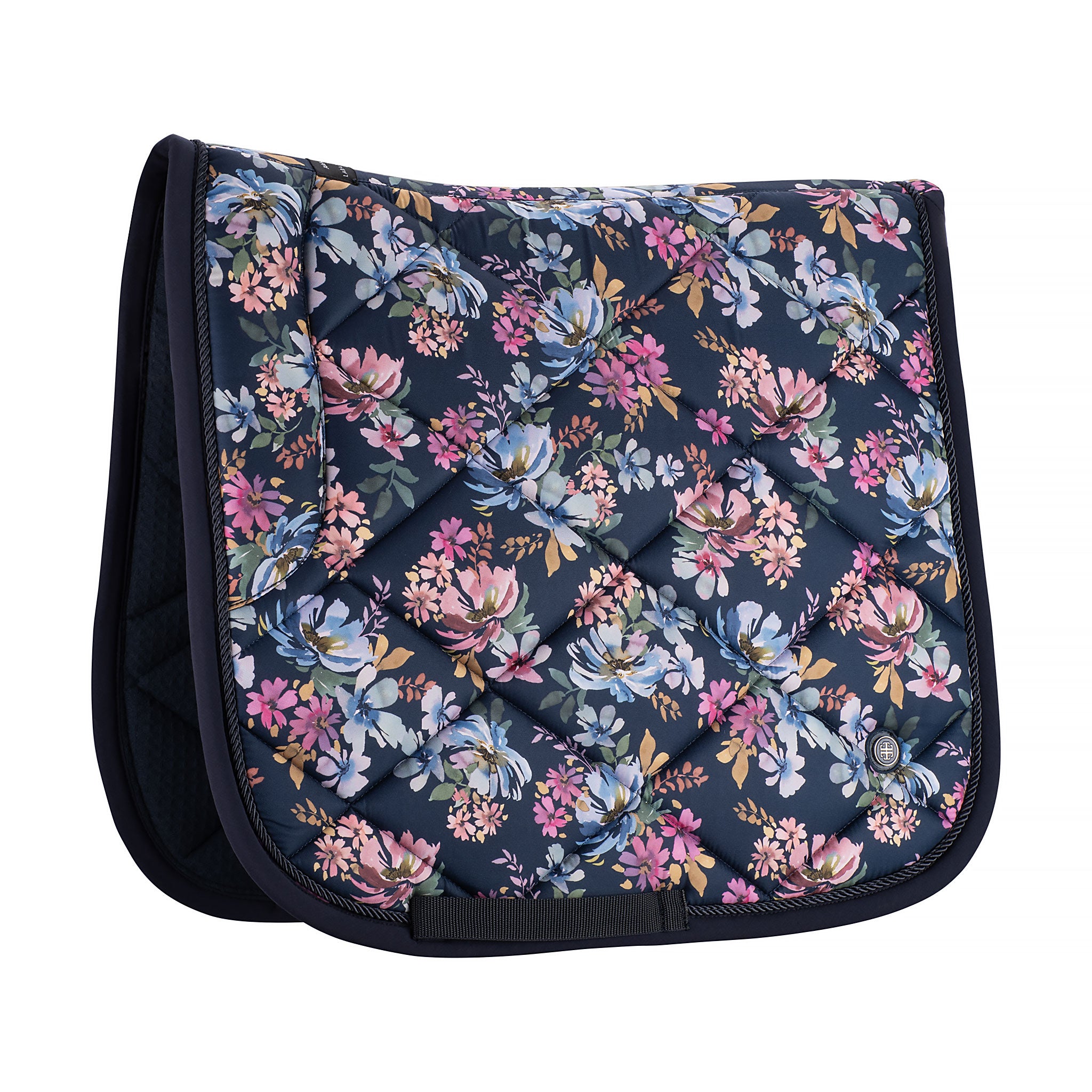 This ultra soft cob saddle pad is the ultimate in comfort for your horse. Super soft cotton waffle weave lining and eco fill offer natural breathability. The Ashlie Floral print is accented by a complimentary diamond quilt.