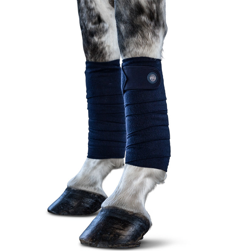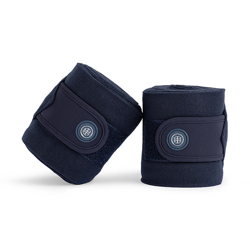 Elevate your look with our beautiful classic navy bandages. The bandages feature a velcro tab closure finished and trimmed with a 300gsm jersey in navy. Navy LT badges with tonal navy rubber backing ensure these bandages will match perfectly with our white LT branded saddle pads, ear bonnets and bell boots.