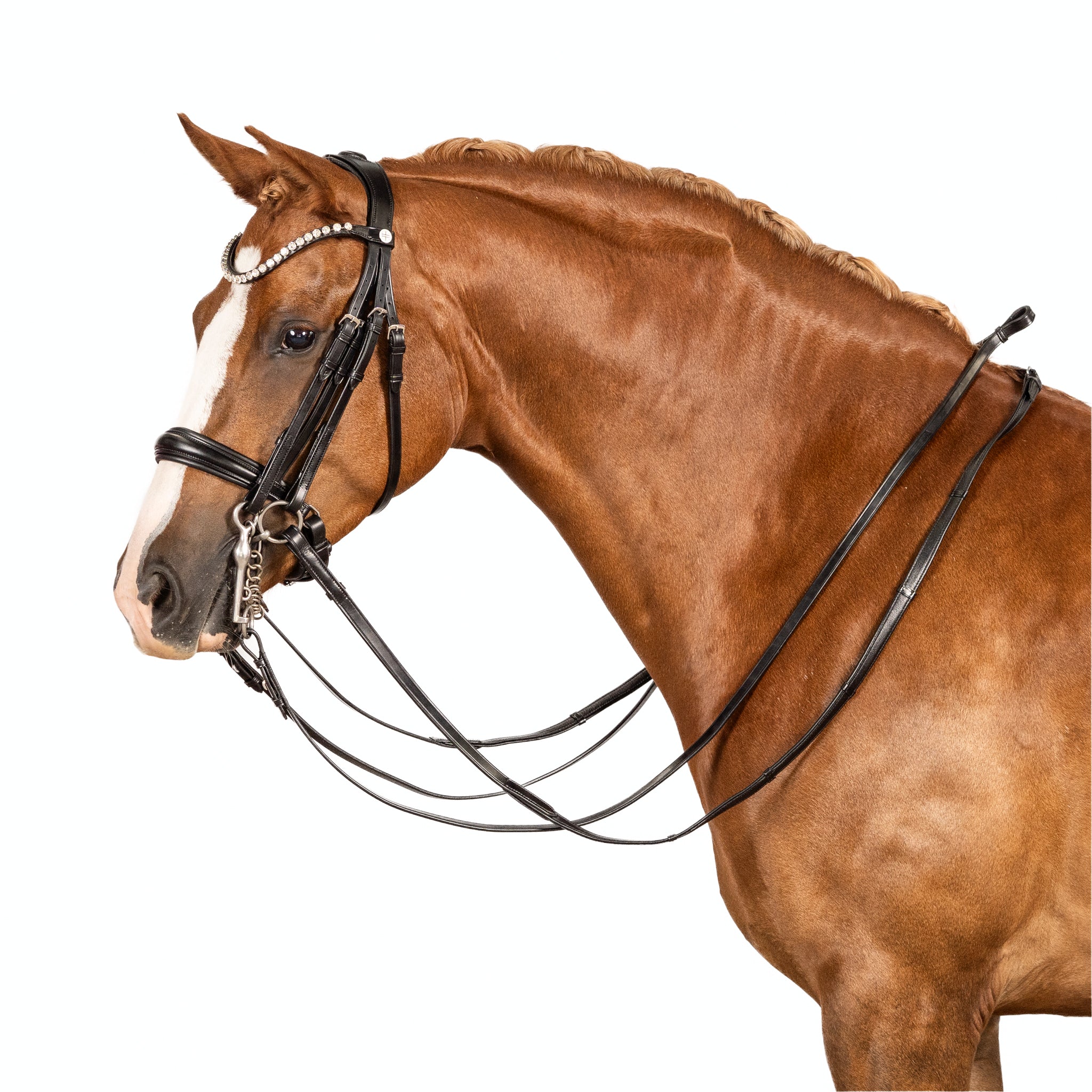 The LT Essential Pony Double Bridle is constructed from flat Italian leather and meets the highest standards for aesthetics and quality. The LT Essential Pony Bridle also comes complete with the same unparalleled list of gorgeous extras you know and love from our range of Essential Double Bridles.