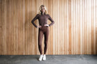 Details: Chocolate LT logo badge on right hip, Lara Tweedie tonal transfer print on right phone pocket.