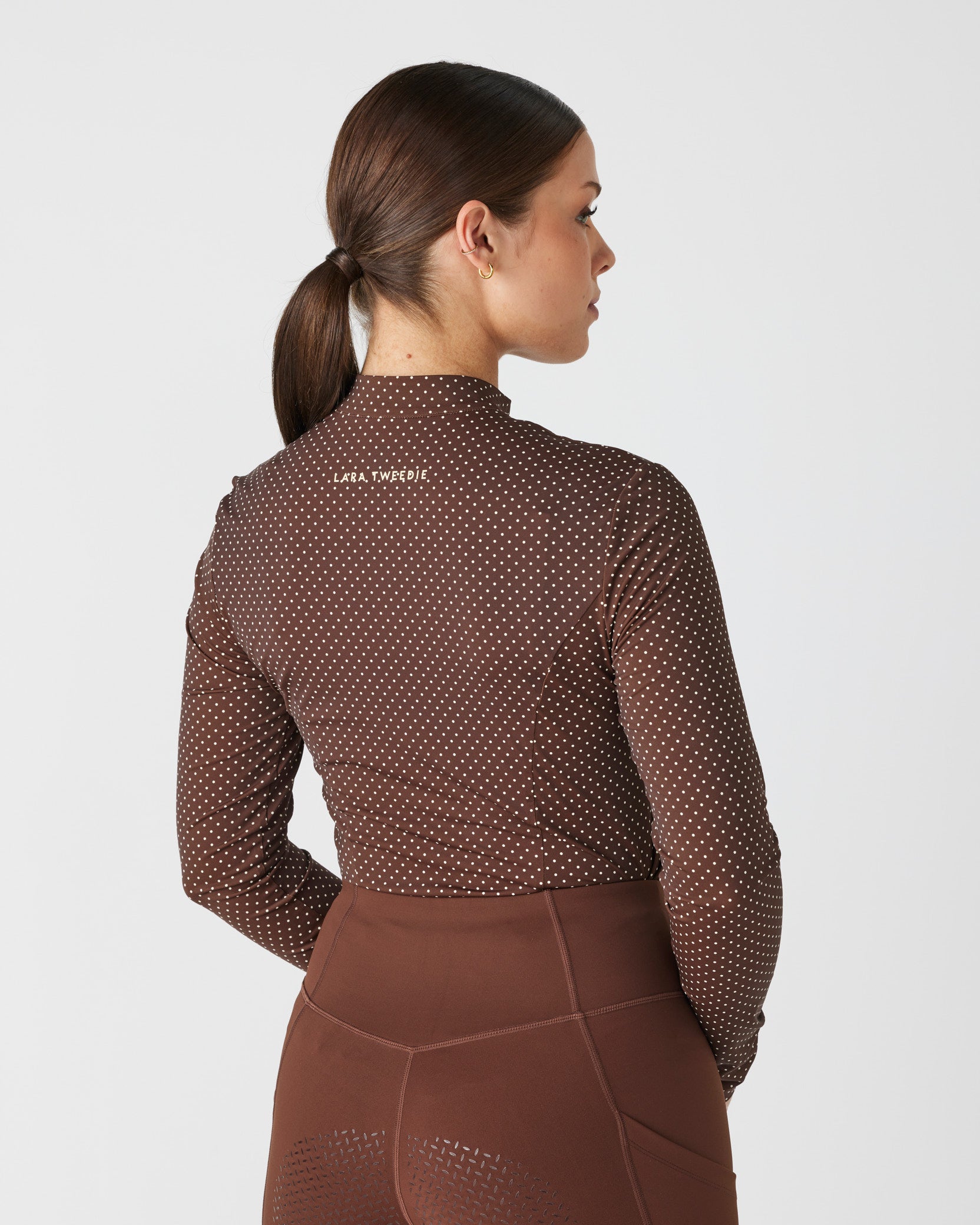 Details: Chocolate LT logo badge, Cream Lara Tweedie tonal logo on back neck.